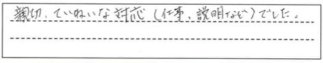 親切ていねいな対応(仕事、説明など)でした。