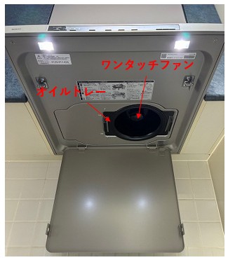 整流板を開けると、すぐファンやオイルトレーを取り外すことができます。