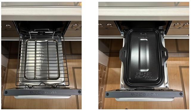 グリルは焼き網とラクックグランを使い分けしていただくことができます。付属品のラクックグランは、遠赤外線効果で蓋つきでもしっかりと焼き目がつくため、いろんな料理で大活躍✨油の飛び跳ねを防ぐことができるため、グリルのお掃除が簡単です。