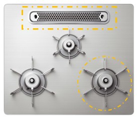 グリルの奥に搭載されたアフターバーナーで煙とニオイをカットし、同梱のラクックグランと併用すると、煙は99%カット!! 現在主流になっているオープンキッチンであっても高い脱臭効果で快適にお過ごしいただけます。