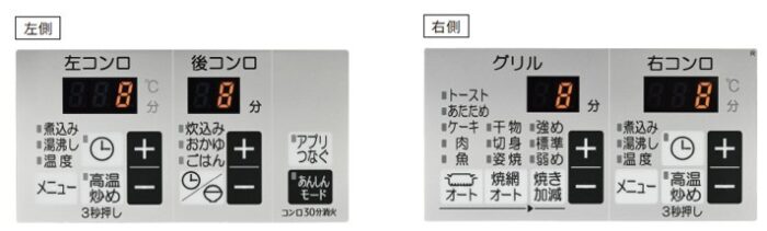 タイマー・温度機能がつき、グリルはラクックグラン・焼き網両方にオート機能が。複雑な機能はなく欲しい機能が全て搭載され、大変使い勝手の良いコンロです。