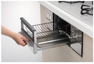 ぜひ、ショールームで体感して頂きたいのは、グリルを滑らかに開閉できるスライドレール。食材やグリル容器の取り外しがしやすくなっています。