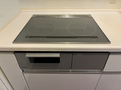 グリルで魚が焼けなくなったため交換をされたいとご相談いただきました。パナソニック『Aシリーズ』の2口IHへの交換をご希望で、現地調査で確認後、問題なく交換可能でしたので、後日交換工事にうかがいました。