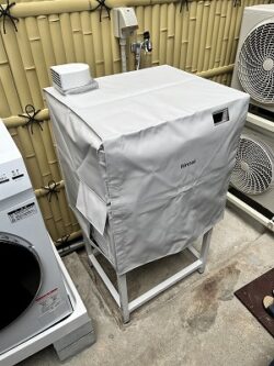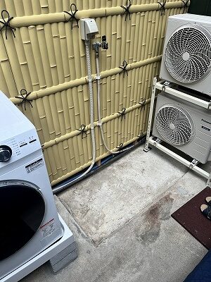 屋外のため、排湿管工事の必要はなく、本体をガス栓、コンセントに繋いだら工事は終了です!