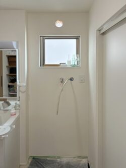 パイプファンは使用されていないとのことで、お客様からのご提案によるものです。 通常は新たに排湿用の穴あけ工事が必要となりますが、既存設備を活用することでスムーズに施工できました。
