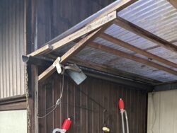 現地で確認したところ、あわせて灯油置き場として使われている軒下の屋外照明についても、交換のご依頼をいただきました。