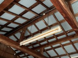 以前よりクサネンをご利用いただいているお客様より、「蔵の照明が点滅していて、器具も古くなってきたので交換したい」とのご連絡をいただき、現場確認にお伺いしました。