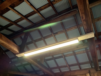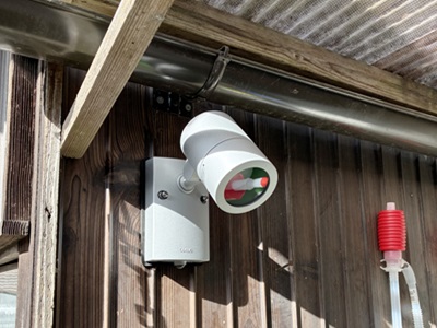 灯油置き場として使われている軒下の照明は、人を感知して自動で点灯する便利なセンサーライトに交換しました。