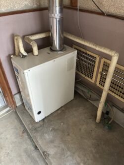 設置されていたのは屋内設置(FE式・強制排気タイプ)で排気筒を通して排気を屋外に出すタイプでした。