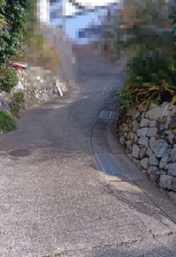 現地の状況を確認したところ、勾配のある道路でLPガスの搬入が難しい環境でした。