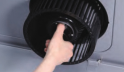 ワンタッチ着脱式シロッコファンは、表面にオイルガードコーティングされているため汚れが簡単に落とせます。