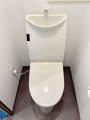 既存のビス跡が新しい便器でうまく隠れる位置にあり、見た目にもきれいに仕上がりました。