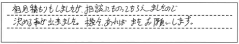 相見積もりもしましたが、相談にのってもらえましたので決める事が出来ました。機会があればまたお願いします。