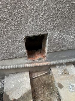 給湯器と直接つながっている循環配管を取り外し、下穴を利用して新しく追い炊き配管を設けます。