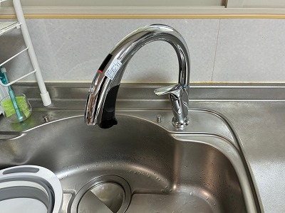 その中でも、吐水口の下に洗い物があるとセンサーが感知して自動吐水するハイグレードのハンズフリータイプを設置させていただきました。
