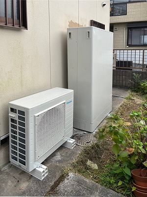 滋賀県栗東市I様邸にてコロナ製多機能エコキュート(床暖房付き)の交換工事をさせていただきました。